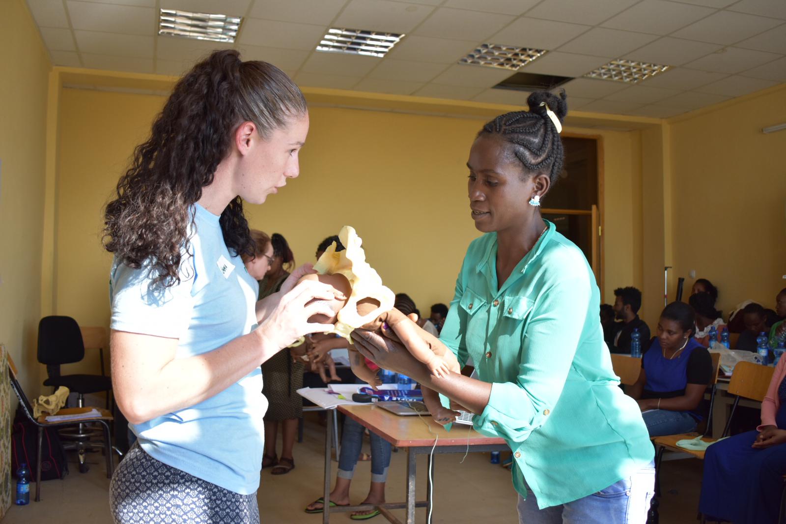 I taught them how to use a manoeuvre called ‘elevate and rotate’ describing the physiology behind why the head does not engage and becomes impacted at the pelvic inlet on the sacral promontory. Once they understood this, the manoeuvre came easily to them. They watched it on a video and had many goes at practicing it. This manoeuvre was so important for all of them to learn but in particular those working in rural health centres. Having heard the stories they shared throughout the day about obstructed breech births and not being able to resolve these complications, I knew that even if a woman had spent hours walking in labour for assistance, it may be too late to save the baby, but these manoeuvres could still help to save the mother. It really struck me how their challenges were so much different to ours back in the UK, how lucky we were to have obstetric assistance at our finger tips within minutes. It puts everything into perspective and changes your views on many things within midwifery when you hear these stories and challenges which they face every day when they go to work.